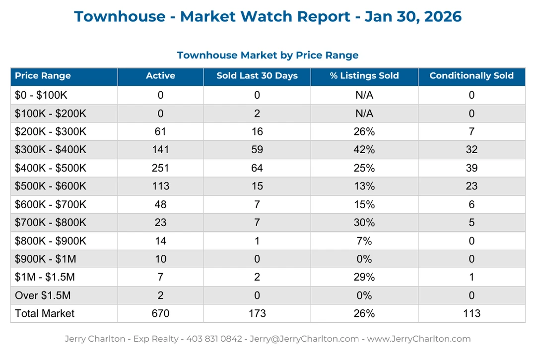 Townhomes continue to be Calgary’s pressure valve — offering space without detached pricing and liquidity without condo baggage.